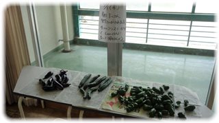 そんな夏野菜を、朝収穫したものが、2年オープンスペースに置かれたテーブルにどっさり積まれていました。