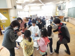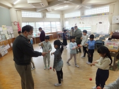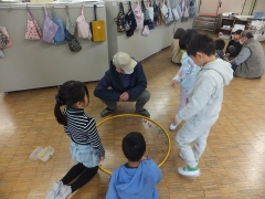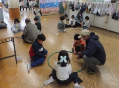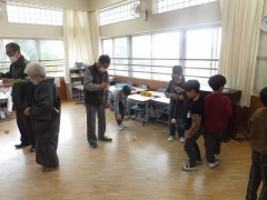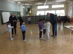 本日の2限目に地域の老人会「ついたち会」のみなさんに来校いただき「昔の遊び」を教えてもらう取り組みをしました。先日から各クラス教室で昔遊びを体験しているものの、地域の方々に教えてもらいいろいろな昔のことも含めて教えてもらおうという体験型の学習です。たくさんの方々に時間を作ってもらいお越しいただきました。本当にありがとうございました。1年生の日永っ子も大喜びです。しっかり教えてもらい少しは昔の遊びができるようになったと思います。