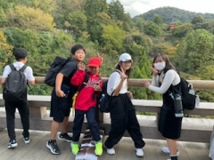 班別学習は清水寺がゴールでクラスで記念撮影です。その前に清水寺の舞台など見学を楽しむ日永っ子です。