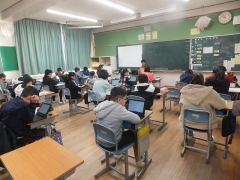午後に国語に取り組みます。タブレットを使い集中しての取り組みです。