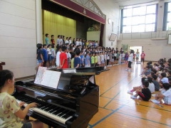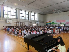 私からは、特に高学年の子どもたちが、委員会活動など、学校をよくするために自ら考えて動き行動できたことがとても素晴らしかったこと、そしてそんな高学年目指してこれからも自分の力を高めていくことを、全校のみんなに伝えました。