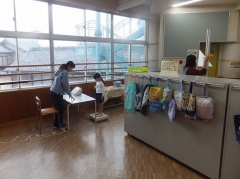 本日より、1学年ずつ「発育測定」を行っていく予定でいます。本日は1年生。教室で体重と身長を確認します。自分の体の成長のようすを確かめます。順番を待つ間は、自主学習ですね。