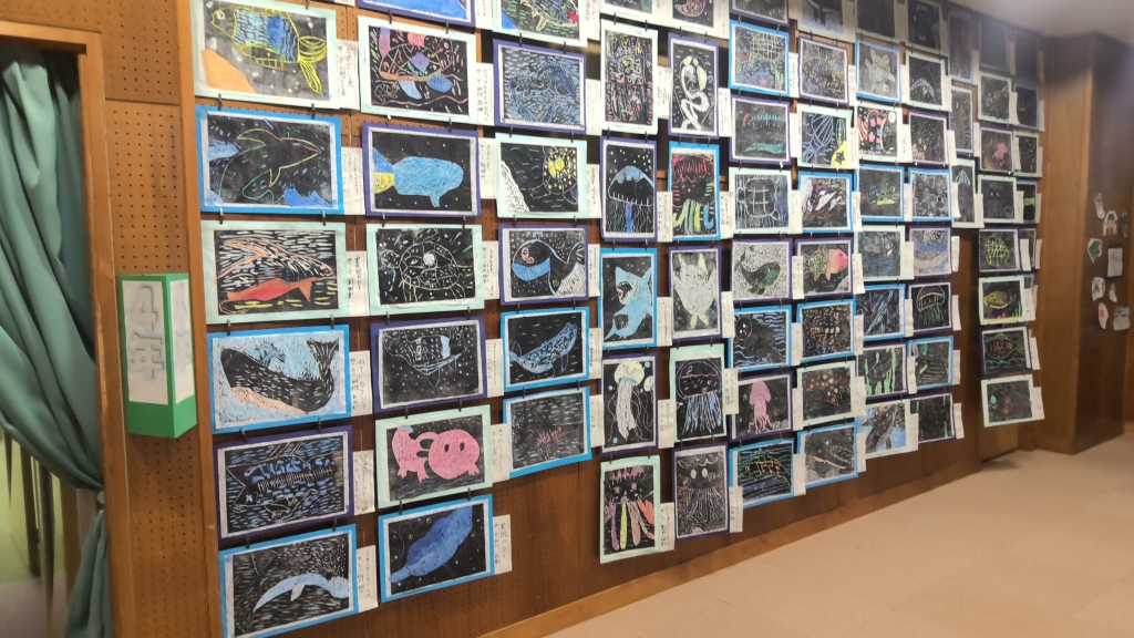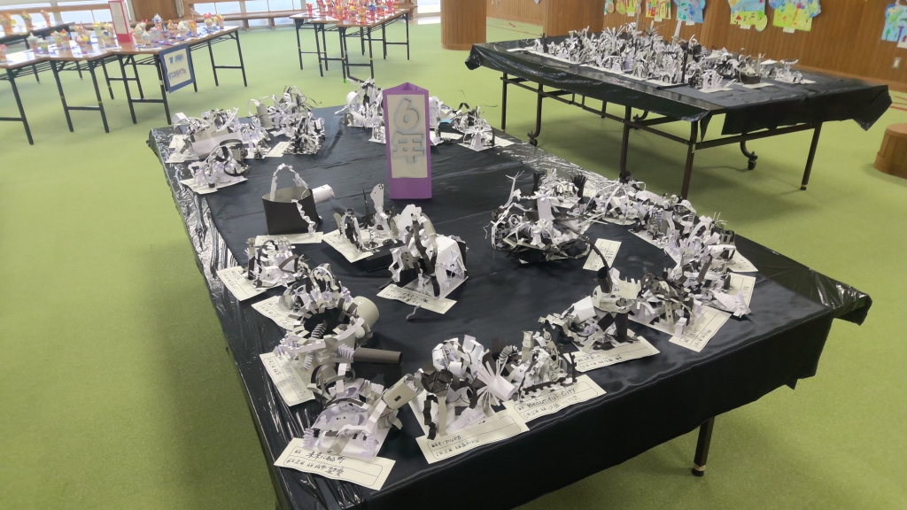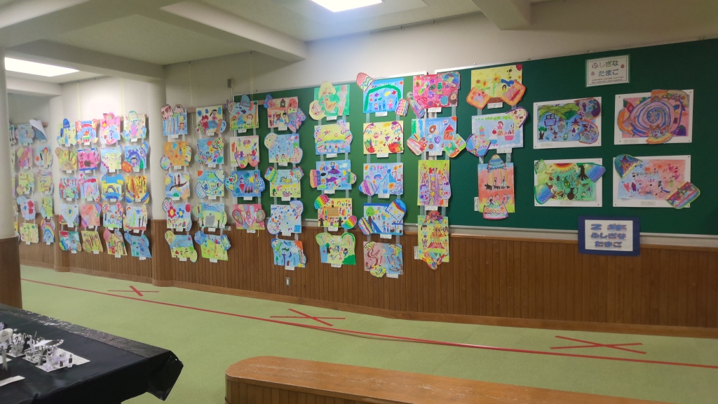 本日より28日まで、アートフェスタと評し、全校の図工作品を展示しています。1階多目的ホール、視聴覚室です。ご都合つきましたら、どうぞ個性豊かな作品を鑑賞してください。