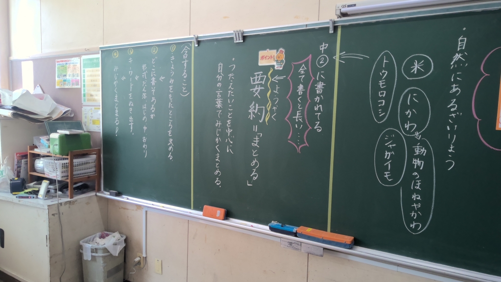 この教材で学ぶことは「要約する」です。教科書には「文章の内容を短くまとめること」とあります。様々な場面で、相手にわかりやすく短く伝えることは求められてきます。その基本を学ぶ教材でもあります。