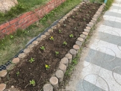 植え付け1週間前に、肥料分となる鶏糞、米ぬかをまぜて土づくりを行います。そして、植え付け前に、たっぷりと水をやり、土に十分水をしみこませてから、一株ずつ植えていきます。