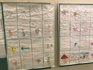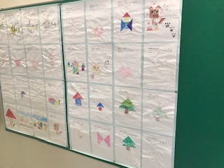 第4回算数チャレンジの応募作品を体育館前に掲示しました。