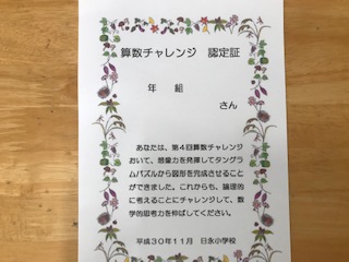 この「算数チャレンジ」楽しみにしている子も多く、登下校の時に子どもたちからこの話題が出てくることも多くなりました。