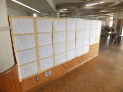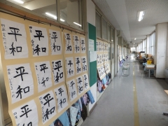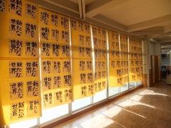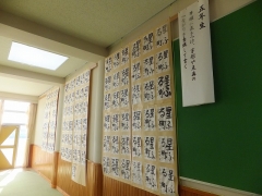 本日より校内書写展を開催しています。明日の授業参観時に保護者や地域のみなさんにご覧いただければと思います。日永っ子が一生懸命書いた字を見てあげてください。