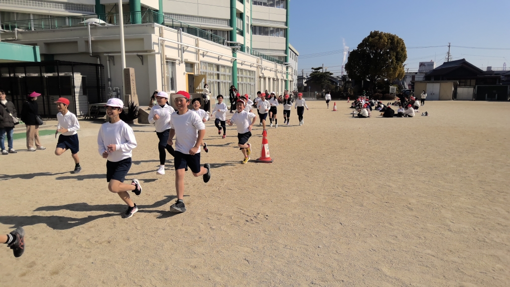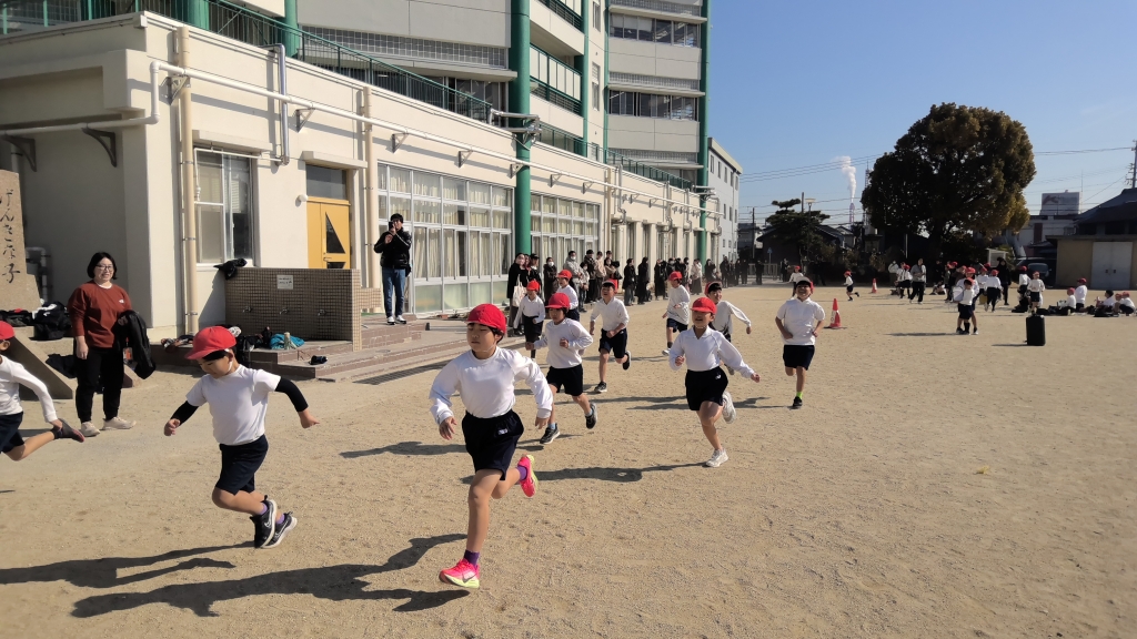 なかまの声援と保護者の方の視線、陽ざしを感じながら、汗をかくひながっ子です。