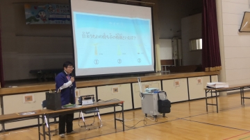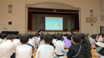 本日、日永小学校の体育館にて、株式会社稲藤の社長・稲垣さんをお迎えし、お話を伺いました。会社のことや「日永うちわ」の歴史、そしてその特徴について、たくさんのお話を聞くことができました。