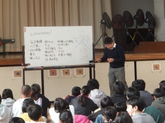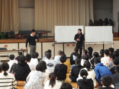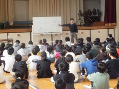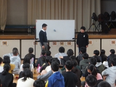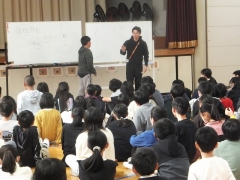 本日5・6限目に体育館で6年生を対象とした「いじめ予防教室」を行いました。津市で弁護士をしている伊藤さんをお招きしてお話ししていただきました。まずは前半、「いじめとはなにか」「人権を守るとはどういうことか」「いじめが起こっているときの自分の立ち位置」「自分にできること」等のお話を、日永っ子にも手伝ってもらい寸劇もしながら分かりやすくユーモアも交えて話してもらいました。