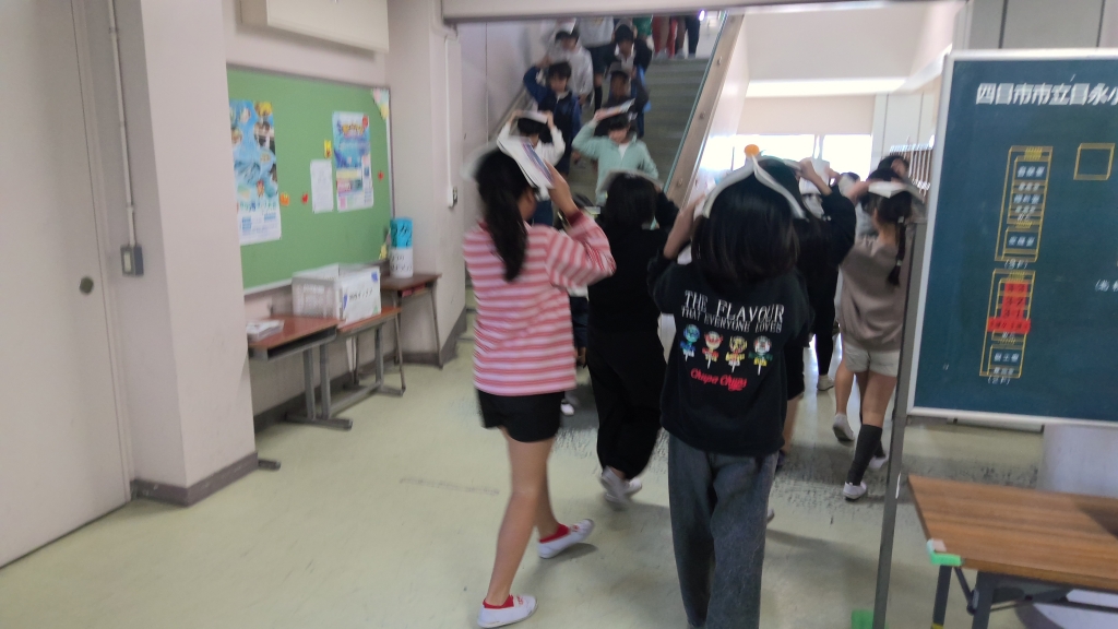 繰り返し発せられる「おさない、はしらない、しゃべらない、もどらない」の行動と、みんなで行う必要性について確かめ合いました。