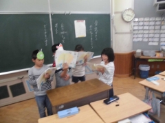 友達と役割を決めて、どのように読むと聞いている人に伝わるかみんなで考え練習します。