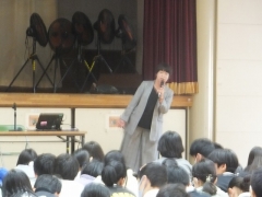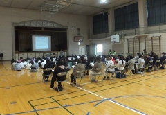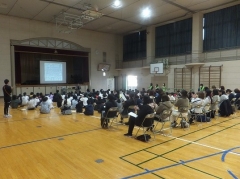 本日、5限目に6年生の児童と参加希望の保護者の方々で人権に関する講演を聞きました。PTA教養部主催での開催です。四日市人権擁護委員協議会会長の上野尚子さんのお招きして「人として強く優しく自分らしく生きるために」というテーマでお話をしていただきました。最初じゃんけんを使ったゲーム等で気分をやわらげ、参加者のお互いの違いを知るためのクイズや動作で楽しく学んでいきます。人は思い込みや無意識の偏見を持ちがちであること確認していきます。こんな時にはどう行動するかを事例を使って考え「お互いを認め合い、よりよい関係を築くために」はどう自分の考えを相手に伝えるのが良いのか考えていきました。45分が短く感じる講演で、集中して聞く日永っ子の多くの姿が見られました。