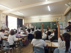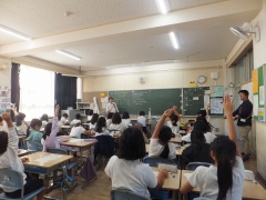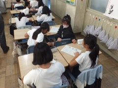 本日5限目に4年生で総合的な学習の時間に人権学習に取り組みました。テーマは「あたりまえってなんだろう」です。日永っ子たちは、普段、あたりまえに疑問に思わず行っている行動を挙げます。「走る、見る、歩く、座る、食べる、飲む、書く・・・」などなど、これって本当に当たり前なのかな?とテーマに向かって考えていきます。絵本「みえるとかみえないとか」を途中まで読んで、登場人物の立場で相手を見た時に感じたことを挙げていきます。そして「このあたりまえって誰が考えた当たり前なのかな」「だれが作ったの?」などの疑問について考えを出し合いました。日常でも自分と違う考えや行動をどうとらえるか?変だなあととらえる気持ちはどんなものかに話を進めていきました。一生懸命考え、口々に考えを言い合う雰囲気がありました。今後も取り組みを進めていきます。