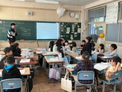 先日の社会科の授業で校内の火事などの災害に備える設備について調べました。今日はその調べたり気がついたりしたことの発表が中心の授業です。校舎利用図に印をつけながらどんな設備があったのか?何に使うものか?について疑問も発表しながらみんなで確認していきました。