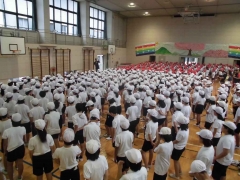 開会式、全校体操の流れや動き方を確認しました。