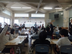 本日の5限目に1年生で研究授業を行いました。年度を通してお世話になっている大学の先生もお招きして研修会(放課後に予定しています)を行います。授業は1年生の国語。題材は「スイミー」。元気に音読する日永っ子たち。授業はテンポよく進み、「ぼくが、目になろう」とスイミーがいった時の気持ちを考えるのがテーマです。みんなで話し合って、気持ちを込めて音読します。頑張る姿がすてきですね。