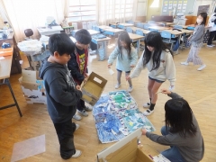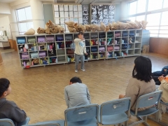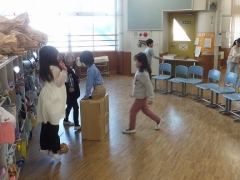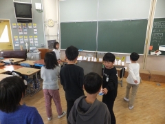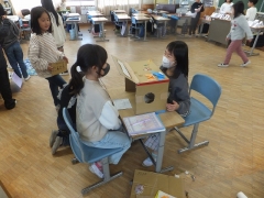 本日の2年生の授業の紹介です。来週、学年で「遊びの広場」という取り組みを行います。そのリハーサルをしていたクラスのようすです。いくつかのブースに分かれて自分たちで考えた遊びを披露しながら、どうしていったらお客さんに喜んでもらえるかリハーサルしていました。楽しくリハーサルができたようですね。どんな遊びなのかは来週までのお楽しみ・・・。ほかのクラスはどんなのかな?