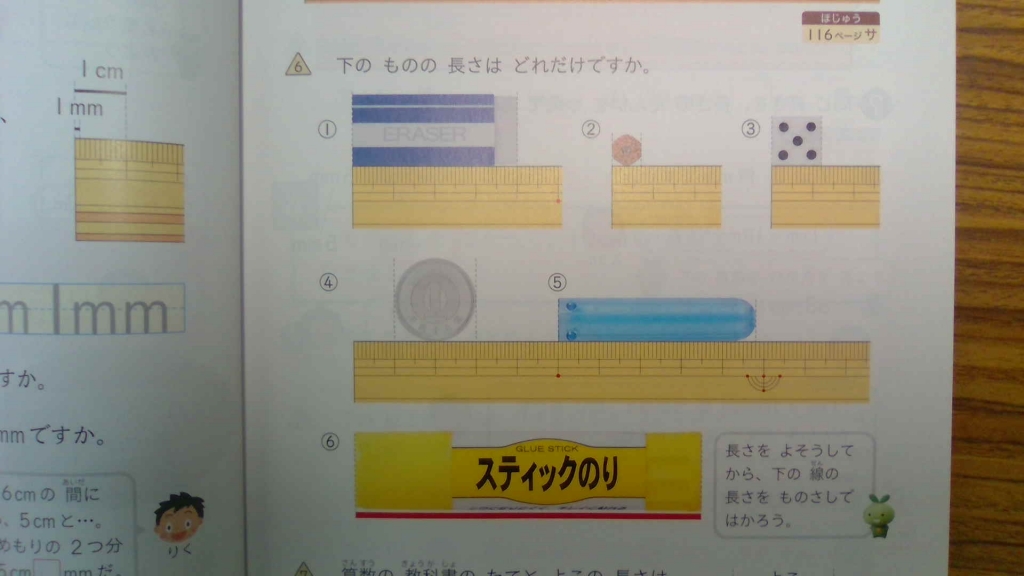 「cm」「mm」を学び、「竹のものさし」を使って、何cm何mmを測り取る練習をします。
