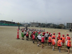 ★走る子は、クラスごと色別のゼッケンを着ます。