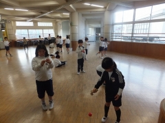 先日も紹介しました1年生の昔の暮らしを知る取り組みです。本日も1年生でいろいろな昔の遊び(もちろん今でも遊んでいる人はたくさんですね)を体験してみる取り組みをしていました。一生懸命な日永っ子たちです。できたことを喜び、できなかったら悔しがって、いろいろどうしたらよいか聞いて頑張ってみる・・・大切な取り組みです。笑顔があふれていますね。