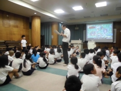 四日市南警察署生活安全課の方をゲストティーチャーにお招きして、「不審者対応防犯教室」を行いました。