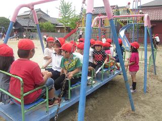 12日(水)六呂見方面に探検に出かけました。川で巻き貝やザリガニを見ました。六呂見公園では、12人乗ることのできるブランコに子どもたちは大興奮でした。少し遠かったですが多くの発見があった探検でした。