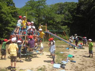 1組と3組は中の町公園と上の公園と学童に行ってきました。上の公園では、ぐるぐるすべり台に驚いていました。行ったことのなかった公園に行って、「こんなところに公園があったんだ!」と感動している子もいました。