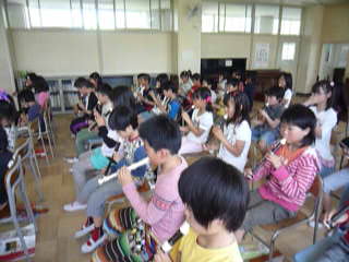 3年生から音楽で「リコーダー」の学習が始まります。子どもたちは一生懸命穴を閉じたり開いたりしながら練習をしています。シの音から始まってラの音に挑戦しています。