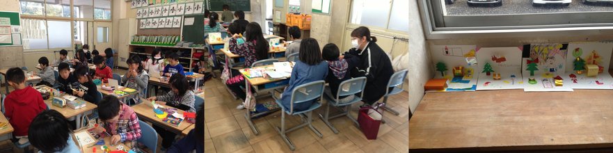 1組では図工で「クリスマスカード」を作りました。2組では体育で「ハリーポッター38」(表現運動)をしました。3組では書写で「正月」を一緒に書きました。各クラス短い時間でしたが、楽しく交流することができました。