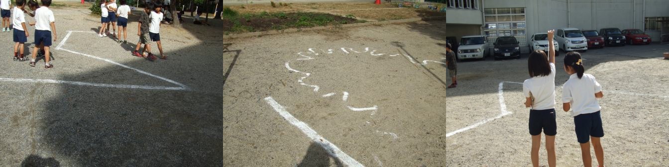 今、理科で「かげのでき方と温度のちがい」を学習しています。今日はとてもよい天気だったので、12時と2時と3時に、できたかげの跡をなぞってかげの動きを調べたり、日陰と日なたの温度を測ったりしました。