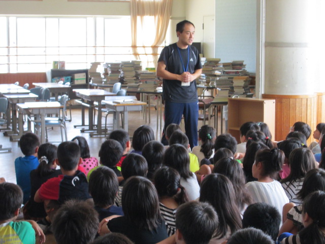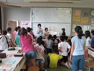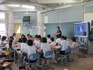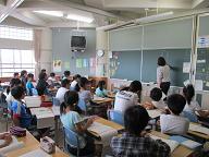 英語の授業の様子です。I Like〜とかDo you Like〜?などの言葉を何度も繰り返し発音ながら,楽しく学習を進めている様子です。