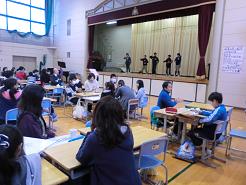 楽しい会話や,クイズ,ステージでのダンス,歌など,さまざまなおもてなしをして,感謝の気持ちを伝えました。