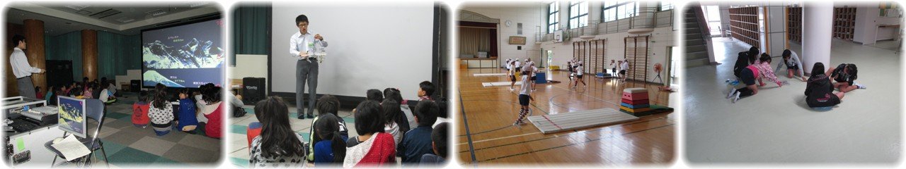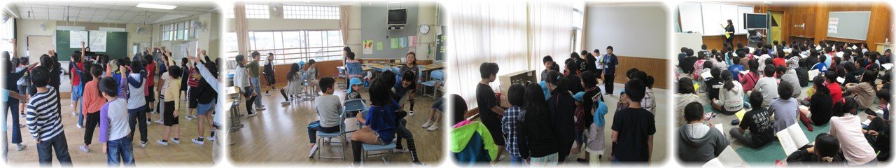 4年生の音楽です。身体を左右に揺らしながら楽しそうに合唱していました。指導者の「『ゴーッ』の掛け声のとき音が低くなっているよ」とのアドバイスを受けると子どもたちは、歌詞に合わせて元気にこぶしを突き上げ、張りのある声で歌うことができました。この曲は、日永地区文化祭と土曜参観で披露するそうです。(1枚目)5年生は、今年2回目の日永中央保育園との交流です。まず、体育館に入って全員でダンスを踊りました。各学級では、「椅子取りゲーム」や「だるまさんが転んだ」、「宝探し」などの5年生が趣向を凝らしたゲームを楽しみました。それぞれの場面で、5年生の「園児に楽しんでもらえるように」「けがをしたりしないように」といった気遣いが感じられました。その後、保育園に移動して園児の「つんつくおどり」を見せてもらいました。(2,3枚目)6年生が修学旅行に向けての学年集会を開いていました。できたばかりの栞を全員で読んだり、指導者の説明を聞いたりして持ち物や行程を確かめていました。各学級でも有意義な旅行にするための事前学習に取り組んでいます。(4枚目) |