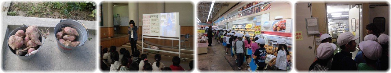 台風26号の接近で心配された天候も予想されたよりも影響が少なくて一安心といったところです。雨も上がり,支援学級の子どもたちは1学期から畑で育ててきたさつまいも掘りを行いました。草取りをしたり水やりをしたりして大切に育ててきたおかげで,とても立派に育ったさつまいもを収穫することができました。調理して食べるのが楽しみですね。(1枚目)2年生の視力検査と保健指導がありました。保健指導では目の大切さ,特に目が悪くならないように,よい姿勢について学習しました。すわるときの姿勢や字を書くときの姿勢のポイントを確認した後,これから目を守るために自分で気をつけることをふりかえりシートに記入しました。(2枚目)3年生は「社会でお店のしくみや工夫」について学習しています。その一環として,近くのスーパーへ見学に出かけました。お店の人の案内で店内を1周して見学した後,魚を刺身にしている場面やトラック等が荷物を運び込む場所など,お店の裏側も見学させてもらいました。最後のお店の人への質問タイムでは,事前学習がしっかりできていたこともあって,全員が質問できないほどたくさんの手が挙がっていました。見学したことをもとにこれからさらに学習を深めていきたいと思います。(3・4枚目) |