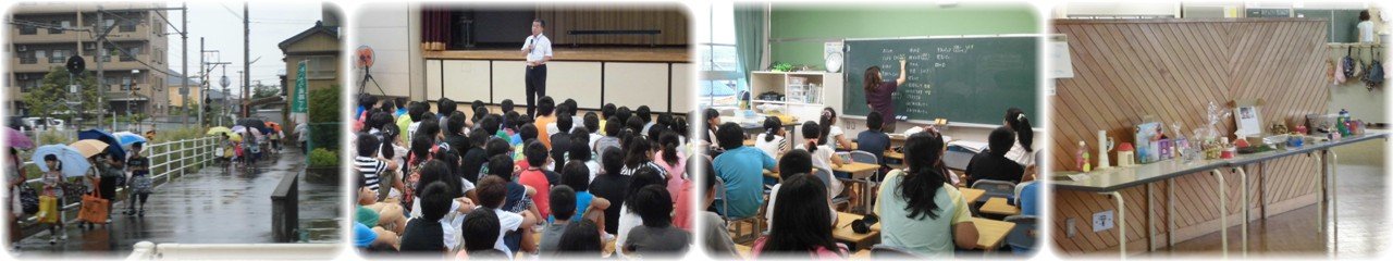 44日間という長い休みが終わり,2学期が始まって再び元気な子どもたちが学校に戻ってきました。今朝はあいにくの雨模様でしたが,西門のところに立っていると作品等を手にした子どもたちから元気のいい挨拶が返ってきて安心しました。(1枚目)始業式では,2学期が始まるにあたって3つの話をしました。1つ目は,2学期は一人一人がぐんと大きく成長する学期にしてほしいということ,2つ目は、当たり前のことを当たり前にできるようにしてほしいということ,3つ目は校舎の改修が終わり、美しくなった校舎を大切に使おうということ,です。加えて,8月末に起こった市内中学生殺害事件にかかわって,自分の命を守ることの大切さを改めて呼びかけました。各家庭でも十分に話し合ってください。(2枚目)始業式の後は学級指導でした。夏休みの宿題や作品を提出したり,早速2学期の係を決めたりしていました。(3枚目)明日から5日まで夏休み校内作品展を行います。各教室前で展示しますので,ぜひご覧ください。(4枚目) |