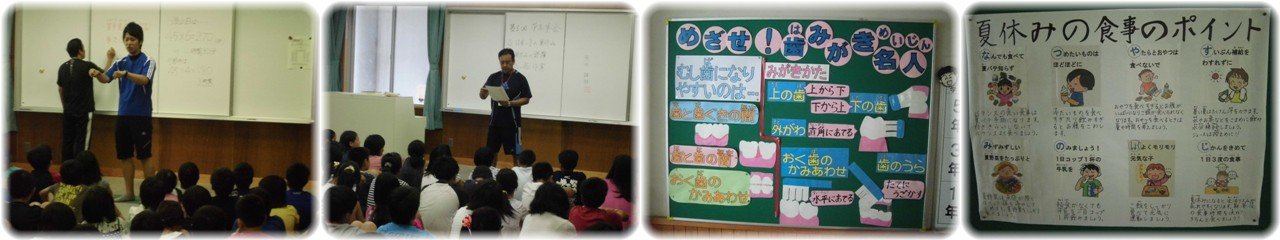 1学期の終業式です。夏休みの生活について,子どもたちには@いろいろなことにチャレンジしようA生活のリズムを自分で整えようB安全に気をつけようの3つについて話をしました。(1枚目)「よい歯のコンクール」の表彰を行いました。歯みがきをがんばり,むし歯がないだけでなく歯ぐきの状態や歯並びの良さが評価されました。(2枚目)6年生と職員で教室等の引越作業を行いました。すでにお知らせしたように,いよいよ管理棟の改修工事に入ります。校舎内だけでなく,校舎の外壁もリニューアルします。8月末の完成を楽しみに待っていてください。なお,工事に伴い,夏休み中はいろいろご不便をおかけすることもありますが,ご理解・ご協力をお願いします。8月31日のPTA奉仕作業での引越作業もご協力よろしくお願いします。(3・4枚目)