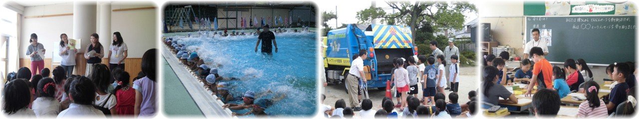 今日は☆マジョリカ☆の読み聞かせの日でした。朝は6年生の各クラスでの読み聞かせ,20分休みは多目的ホールで「また ぶたのたね」という本の読み聞かせをしていただきました。(1枚目)1年生の水泳です。昨日の雨で少し水が冷たかったようですが,子どもたちは水の中へ入ると大はじゃぎであちこちから歓声が聞こえてきました。プールサイドに沿って水中を歩いた後,端から端まで泳いだり歩いたりしました。その後はバタ足の練習をして,思い切り水しぶきをあげていました。(2枚目)4年生の社会です。市役所生活環境課の方に来校いただき,ゴミについての学習を深めました。初めにゴミの分別の大切さやゴミの処理過程等について話を聞きました。その後,運動場でパッカー車の見学を行いました。パッカー車についての説明を詳しく聞いた後,子どもたちが用意したゴミを実際にパッカー車に入れ処理されていく様子を見学しました。子どもたちは生活環境課の方々の苦労等を実際に聞き,自分自身のゴミの分別等について改めて見直すことにつながったことでしょう。(3枚目)6年生の「総合」です。南中学校区の保幼小中の授業公開として,多くの先生に授業を参観してもらいました。「命を見つめて」というテーマで,重い病気を克服した中学生(猿渡瞳さん)が書いた弁論大会の原稿を資料として学習を進めました。資料を読んで共感する部分をグループや全体で話し合いました。(4枚目) |