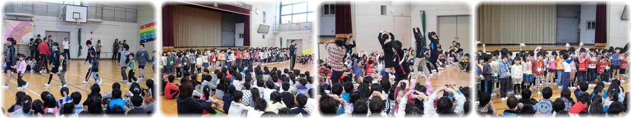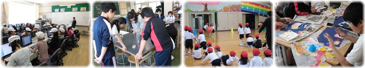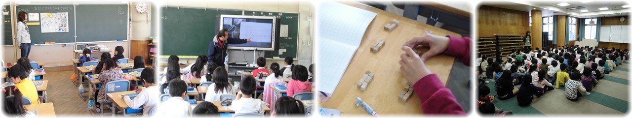 3年生のパソコンの学習です。Word(ワード)を使って「あいうえお」をキーボードでうつ練習をしていました。慣れない手つきでしたが,両手を使って苦労しながらうっていました。(1枚目)6年生の理科「ものの燃え方」の学習です。アクリルの筒のどこに穴をあければろうそくが燃え続けるか,予想を立てた後に実験をして確かめていました。上と下に穴をあけることが必要なことを実験を通して学びました。(2枚目)1年生の学年体育です。2人組でボール運びリレーをしていました。力を合わせてうまくボール運びができていました。リレーが始まると「ガンバレ!ガンバレ!」と大声援が体育館中に響いていて,1年生のパワーにびっくりしました。(3枚目)4年生の図工です。前時に染めた紙をはさみで切ったり手でちぎったりして紙に貼りながら「未知の生物」を描いていました。どんな「未知の生物」が完成するか楽しみです。(4枚目) |