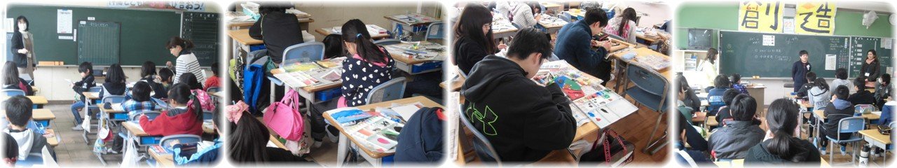3年生の算数科で,ぼうグラフの書き方について学習していました。すきなくだものを整理した表をぼうグラフに表していきます。縦軸の1目盛りの大きさ,単位,横軸に書く項目やその順番について,指導者が一つ一つ確認しながら黒板の拡大グラフに書き込んでいき,子どもたちも教科書に書き込んでぼうグラフを仕上げていました。(1枚目)4年生の図工で,絵手紙を作成していました。春をテーマにしたデザイン画をもとにして下絵を描き,絵の具できれいに着色していました。この絵手紙は3月に行われる「一人暮らし高齢者の集い」でプレゼントする予定です。(2枚目)6年生の図工で,卒業制作としてマルチラックづくりに取り組んでいました。飾りや絵等を彫刻刀でていねいに彫り,絵の具できれいに着色していきます。作品が完成するまでもう一息です。(3枚目)6年生の外国語活動で,「I want to be a〜」という話型をもとに将来の夢についてスピーチするという活動に取り組んでいました。初めにスピーチメモを作成してからグループ内でスピーチをして,その後は一人ずつみんなの前でメモを見ずにスピーチします。予想以上に滑らかにスピーチできていてびっくりしました。(4枚目)