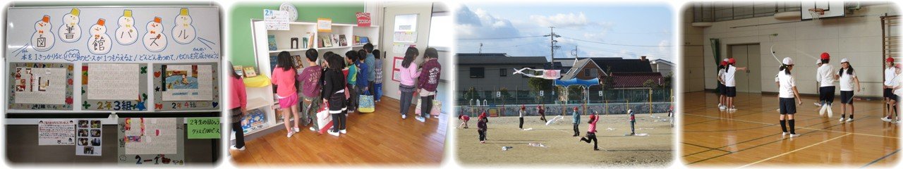 今日から読書週間が始まりました。「完成目指して読書に励もう!」をめあてに,本を1冊借りるごとに『表紙絵パズル』のピースがもらえます。パズルの台紙は,昇降口に掲示されています。図書館では,1年生が借りる本を選んでいました。人気は図書館司書の推薦コーナーです。ここにはシリーズ本の第1巻が置かれています。全巻読みたくなるような本に出合えるといいですね。(1・2枚目)1年生が図工の時間に作成したたこを揚げていました。はじめは風が弱かったので,たこを揚げるためには全力で走らないといけません。フワーッとたこが揚がると,「揚がった!」と喜びの声が上がりました。風が吹き始めるとあちらこちらでたこが揚がり始めましたが,風を背に走っているのでなかなか揚がらない子どもや糸が絡まって指導者に助けを求める子どもいました。放課後,運動場でたこ揚げをしている子どがいました。風が強いうえに遊んでいる人も少ないので,糸を長ーく伸ばして揚げることができました。(3枚目)長なわ集会は終わりましたが,なわとび活動は続いています。5年生は,ダブルダッチに挑戦していました。交互に回る2本のなわにタイミングが合わせられず,なかなかなわに入れません。指導者からは「自分のほうに向かってくるなわ(色つき)を跳ぶタイミングで入ろう」と助言がありました。何度も挑戦するうちに3回,5回,7回と跳べるグループが出てきました。(4枚目) |