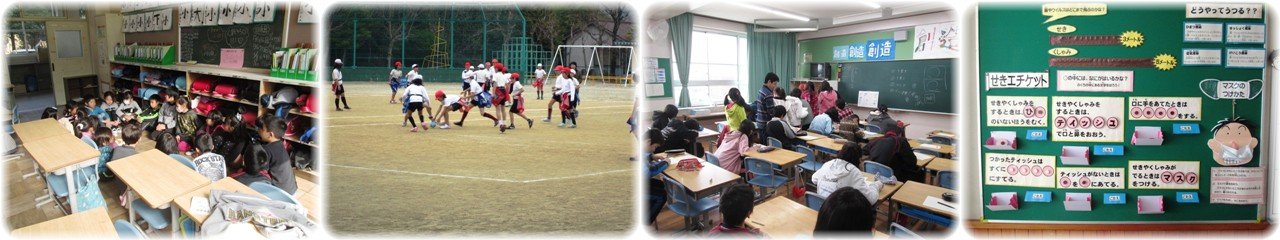 今年度最後の発育測定が始まっています。今日は、2年生でした。身長と体重を計り終えた後の保健学習では、風邪やインフルエンザがはやるこの時季に気をつけることを学習しました。咳やくしゃみをするときのエチケットを出し合ったり、手洗やうがいの仕方を確かめたりしました。子どもたちは、1学期に学習した手洗のことをしっかり覚えていました。また、栄養職員から体の『ガードマン』と『おそうじマン』を強くするために、野菜をたっぷり食べることが大事だという話を聞きました。(1枚目)3年生は、国語で「カルタ」のことを学習しています。これまで『いぬぼうかるた』に書かれたことわざの意味を調べたりしてきました。今日は、実際に『いぬぼうかるた』で遊びました。読み手がことわざを読み始めると、みんなの頭が引っ付くほどに体を乗り出して札を探していました。(2枚目)午後から南中学校に日永小・泊山小・河原田小の6年生が集まり,南中学校区人権フォーラムを行いました。初めに授業見学です。音楽室では,日永小卒業生とともに校歌斉唱を行いました。その後,体育館に移動し,まず人権作文の発表が各校代表者1名ずつ計4名からありました。日永小代表は「人として大切にしていくこと」として相手の気持ちについて考えることの大切さについて訴えました。どの学校も堂々とした発表で感心しました。次に人権ワークショップを行いました。中学生の代表を中心に3校の子どもたちが28のグループに分かれ,画用紙に学校名・名前を書いた後,「中学校で一番がんばりたいこと」を書いて自己紹介をしました。自然と拍手が起こるグループもあって,雰囲気が和んでいきました。その後は,「中学生に携帯電話やスマートフォンは必要か」というテーマに基づき,自分の意見をまとめてグループ内で発表し合いました。相手の意見を尊重して聴くことも大切な人権の視点であることを学んだことでしょう。最後に,クラブ活動見学を行い,さっそく中学校で入りたいクラブを中心に見学に訪れていました。(3,4枚目) |