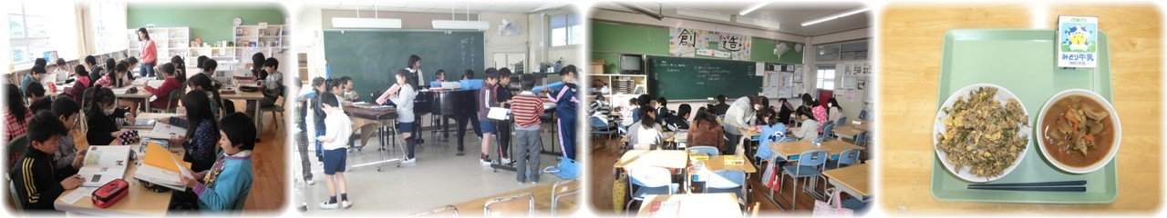 3年生のブックトークです。図書館司書から百科事典の使い方を教えていただきました。一人1冊の百科事典が配られ,指定された3つの言葉を百科事典から見つけ出すという学習を行いました。国語辞典を引くことに慣れていて,すぐに言葉を発見できた子もいれば,なかなか発見できない子もいました。(1枚目)3年生の音楽です。初めに全員が輪になり,順番にリズムリレーをしていきます。今日は途中で途切れることなく最後までリズムがつながりました。続いて「ゆかいな木きん」の歌詞唱や階名唱を行った後に,班で合奏練習に入りました。班の中で教え合う姿も見られました。最後にピアノに合わせて試しの合奏を行いました。練習時間が短かったけど,しっかりとリズムがとれた合奏ができていました。(2枚目)6年生の算数で,少人数授業で「いろいろなグラフから特徴を読み取る」という課題に取り組んでいました。年齢別人口を表した柱状グラフや人口の移り変わりを表した折れ線グラフから,読み取れることなどを出し合って確認していました。(3枚目)今日の給食は「みえ地物一番給食の日」メニューで,「三重さば丼・牛乳・豚汁」でした。「牛乳・卵・さば・豚肉・煮干・にんじん・白菜・ねぎ・大根・米」と三重県産の食材が多く使われたメニューでした。明日も「みえ地物一番給食の日」メニューです。(4枚目) |