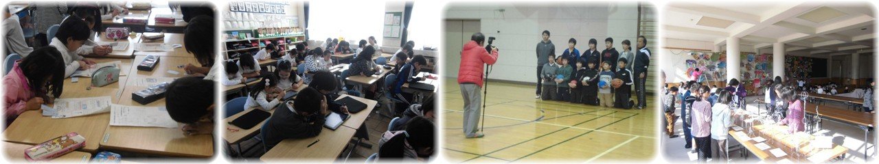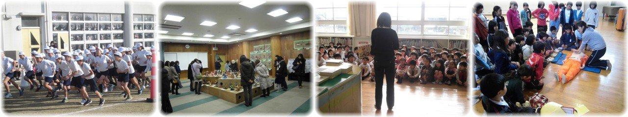 昨日に引き続いて絶好の日和の下,持久走記録会が行われました。今日は4年生が1200m,5・6年生が1600mを走りました。今日も多くの保護者のみなさんが応援にかけつけてくださり,その声援の中を走る子どもたちのがんばりを随所に見ることができました。(1枚目)3日から始まったアートフェスタも今日が最終日でした。力作ぞろいの作品を一生懸命カメラに収めている保護者の姿も見られました。3日間で約200名の保護者にご観覧いただき,ありがとうございました。(2枚目)1年生のブックトークです。初めに図書館司書に日本昔ばなし「ももたろう」と「一寸ぼうし」の読み聞かせをしていただきました。その後はアンデルセン,グリムなど外国の作家の童話を日本の昔ばなしと比べながら紹介していただきました。「赤ずきん」など童話の紹介を始めると,「知ってるよ」という声とともに内容を話し始める子どももいて,興味深くお話を聞いていました。(3枚目)5年生1クラスが「心肺蘇生法とAEDの使い方」を学習しました。人の命に関わる大切な学習です。30回の心臓マッサージと2回の人工呼吸を,救急車が来るかAEDが到着するまでずっと行う必要があることを知るとともに,実際に実技を行ってその大変さを体感しました。その後は,AEDの装着の練習を行いました。子どもたちは貴重な体験をしたことでしょう。10日には残りの2クラスが行います。(4枚目) |