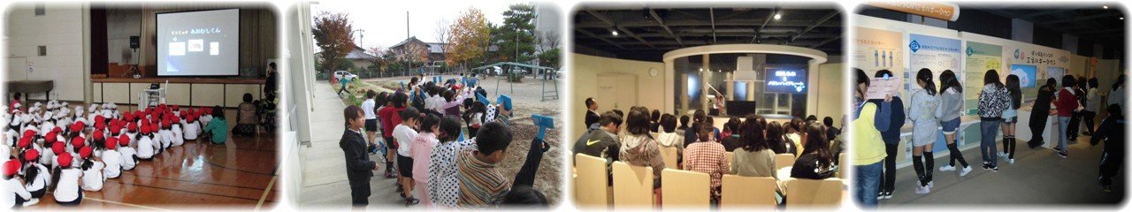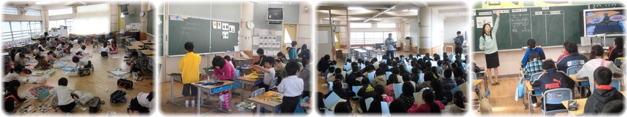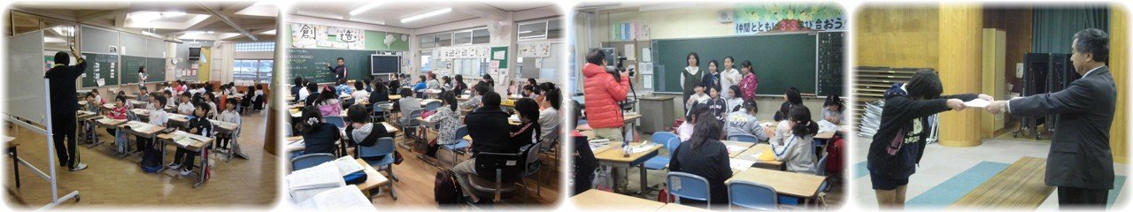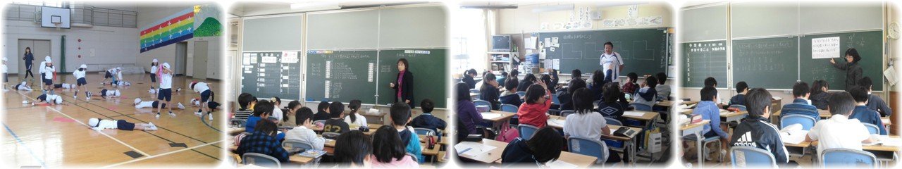 1年生は,北勢きらら学園1年生との2回目の交流会です。全員が体育館に集まり,きらら学園での活動や学習の様子を紹介していただいた後,「リトミックあおむしくん」という運動を行いました。はじめは音楽に合わせてアオムシのようにゆっくり歩くのですが,だんだんスピードが上がっていき,最後はチーターのように全力で走りました。(1枚目)3年生の理科です。一人一人が手鏡を持って中庭に集合です。空には雲がかかり日差しの弱い中でしたが,手鏡で太陽の光を反射させて地面や壁に当てていきます。仲間と一緒に一つ,二つと反射された光を重ねていくと,はじめはぼんやりとしていた光がどんどん明るくなっていきました。光を集めると,明るさが増していくことを学習しました。(2枚目)5年生が社会見学に出かけました。はじめにトヨタ自動車高岡工場へ行き,自動車の生産ラインを見学しました。ロボットや機械の力を借りながらも,最終的にはたくさんの人の力によって1台の車が完成することを学びました。次に東邦ガスエネルギー館に行きました。映像を見たり展示コーナーでクイズやゲーム等を体験したりして,地球温暖化やエネルギーといった環境問題について学びました。最後に省エネルギー活動として自分として何ができるかを考えながらまとめを行いました。(3・4枚目) |
