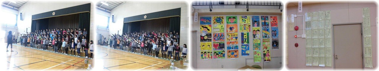 1年生の生活科です。給食室の仕事について学習を進めていて,今日は学校栄養職員に給食室の仕事について質問をしました。「けがはしないですか?」,「食器は手で洗うんですか?」といった給食調理員を気遣う質問もあり,学校栄養職員に答えてもらうたびに「へぇ,そうなんだ!」という納得の顔をしていました。(1枚目)5年生が体育館でダンス大会を行いました。各学級から実行委員が出て,企画・会場設定・運営を自分たちで行いました。各学級とも1曲は共通の曲で,もう1曲は自由曲で踊りました。ダンスの振り付けはどの学級も趣向を凝らしていて見ごたえ十分でした。明日の授業参観で1限目に保護者の方々へも披露しますのでお楽しみに!!(2枚目)6年生は総合的な学習の時間で,将来に向けた生き方について学習を進めています。今日は,地域でお世話になっている主任児童委員の方にご来校いただき,仕事についての説明や仕事を始めたきっかけ,やりがいなどについてお話ししていただきました。「まずはやってみよう」ということから始められた前向きな姿勢やいろいろな人と出会える楽しさを感じながら仕事をしているという思いから,子どもたちは多くを学んだことでしょう。(3枚目)公益財団法人四日市法人会の方3名が来校し,5・6年生が夏休み前後に取り組んだ「税に関する絵はがきコンクール」作品の表彰式が行われました。6年生は最優秀賞1名を初め14名が,5年生は8名が入賞し,一人一人表彰状を渡していただきました。(4枚目) |