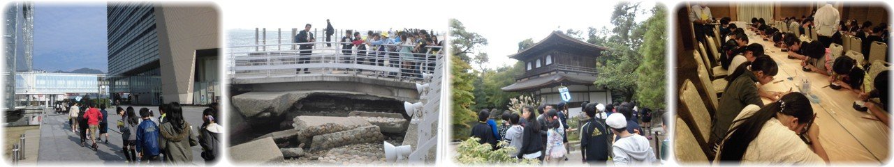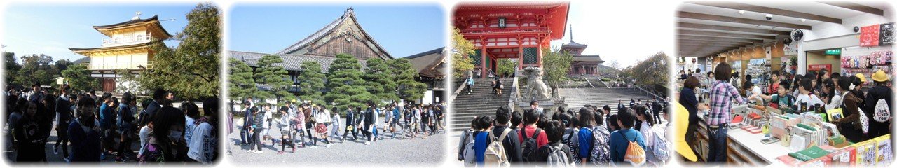11月1日(金),修学旅行2日目です。ホテルを後にし,まず向かったのは金閣でした。開門前から並び,中に入ると目に飛び込んできたのは朝日を浴びて金色に輝く金閣でした。多くの人でごった返していましたが,その隙間から見える金閣の姿に子どもたちも思わず見とれていました。(1枚目)次に向かったのは,二条城です。うぐいす張りの廊下のキュッキュッという音に耳を傾けながら,広い部屋と歴史を感じさせる襖絵等を見学しました。(2枚目)その後は清水寺に向かい,まず昼食を食べた後に,各学級で清水寺の見学を行いました。天気がよかったこともあり,清水の舞台から見える京都市の眺めは最高でした。(3枚目)音羽の滝の所で解散となり,そこからは班別行動となります。清水坂や三年坂,二年坂の両側に並ぶお店を回ってたくさんのお土産を買っていました。チェックポイントを通過して駐車場に集合するころには,手にいっぱいのお土産を持っていました。(4枚目)駐車場を出発し,予定より少し遅れて学校に到着しました。あっという間の2日間でしたが,子どもたちが全員元気に学校に戻って来られたのが一番のお土産だと思います。保護者の皆様にはお忙しい中,お迎えに来ていただきありがとうございました。ゆっくりと楽しいお土産話を聞いてあげてください。 |