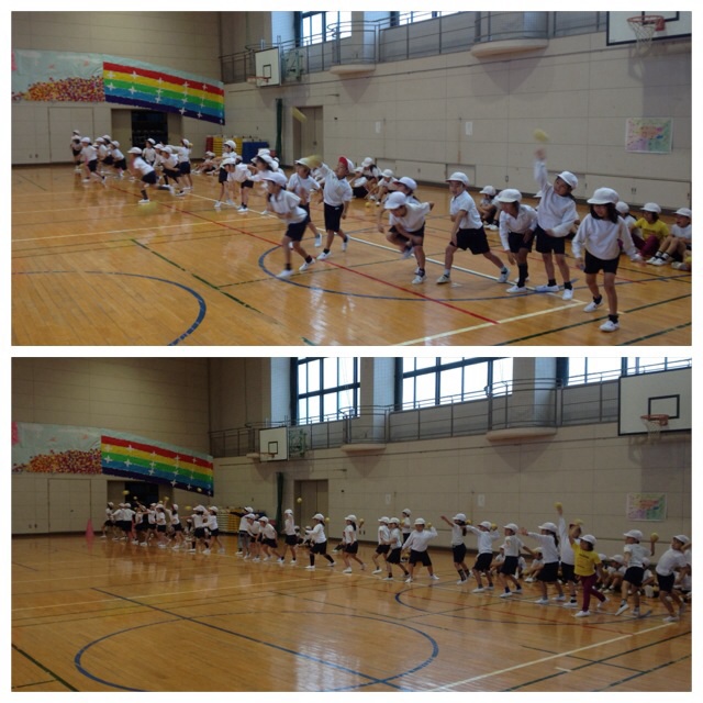 先日50メートル走、シャトルランを計測し、今度はソフトボール投げに挑戦です。雨が降ったので体育館で投げる練習をしました。22日木曜日は、晴れて運動場も使えるようなり、実際に投げました。