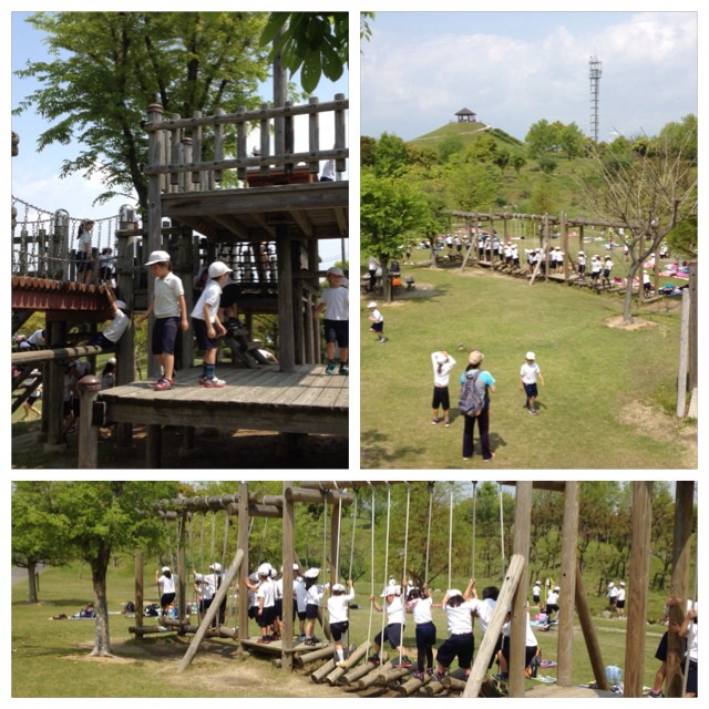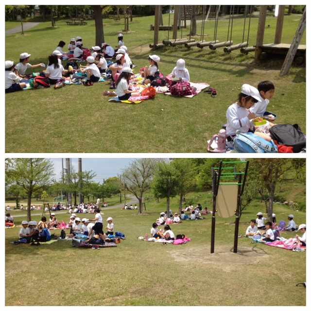 到着後、子どもたちは遊具で遊びました。楽しみにしていたお弁当タイム。ふたをあけるのがワクワク。給食とは違い、いつも以上に笑顔がいっぱいで、印象に残りました。